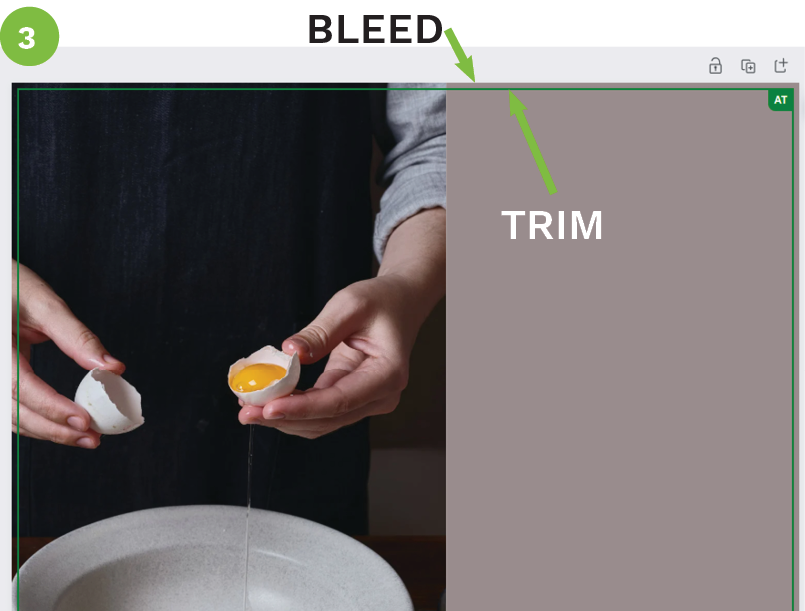 - Ensure items that need to bleed off the page stretch to the bleed edge (see images below).
