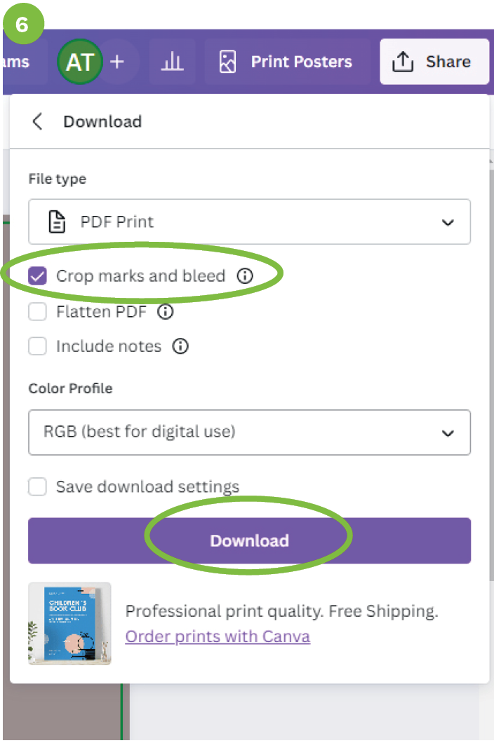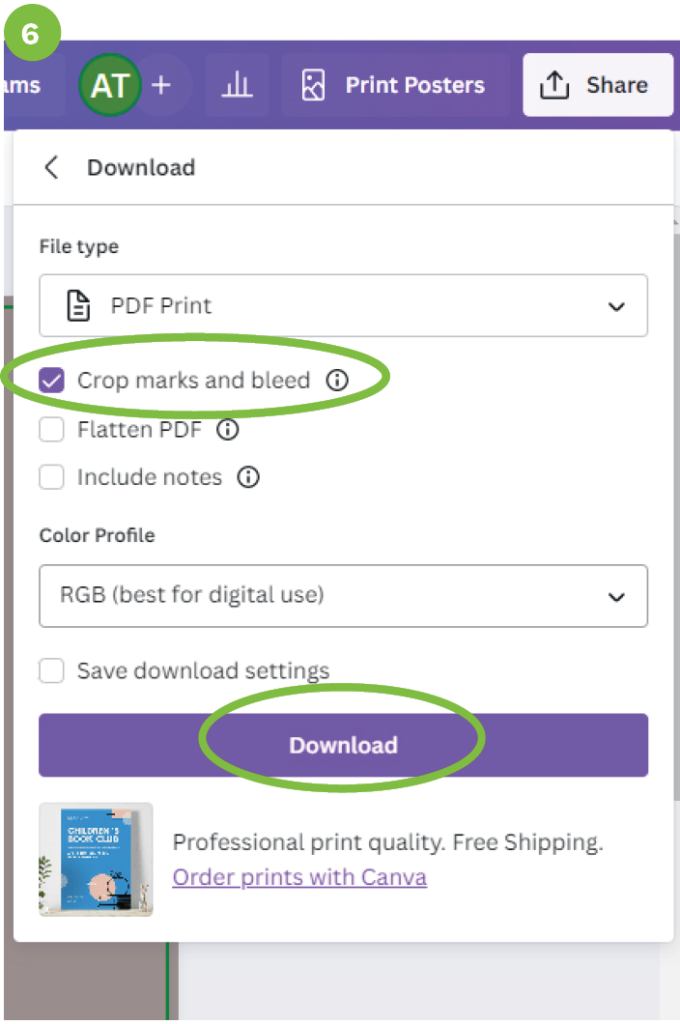 - Check “Crop marks and bleed” and click DOWNLOAD to save to your PC.
