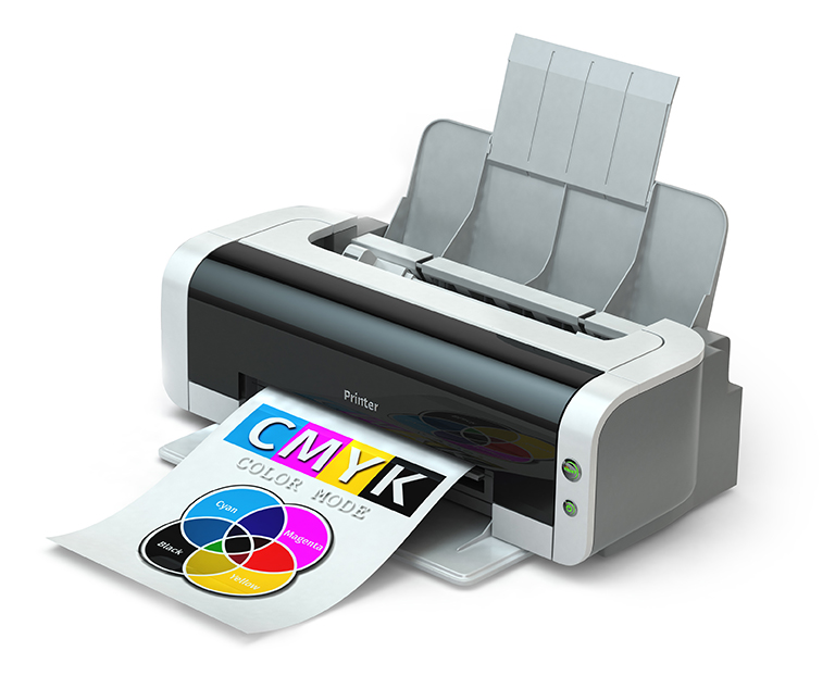 A typical printing press uses 4 colours of ink to create full-colour photographic images. The four inks are placed on the paper in layers of dots that combine to create the illusion of many more colours. CMYK refers to the 4 ink colors used by the printing press. C is cyan, M is magenta, Y is yellow, and K is black. Cyan, Magenta, Yellow and Black are called subtractive colours. Consumer ink-jet printers use CMYK toners in much the same way to produce full-colour printing. Combining them all gives the colour black. When combined in various percentages, these four inks will create an entire spectrum of colours.